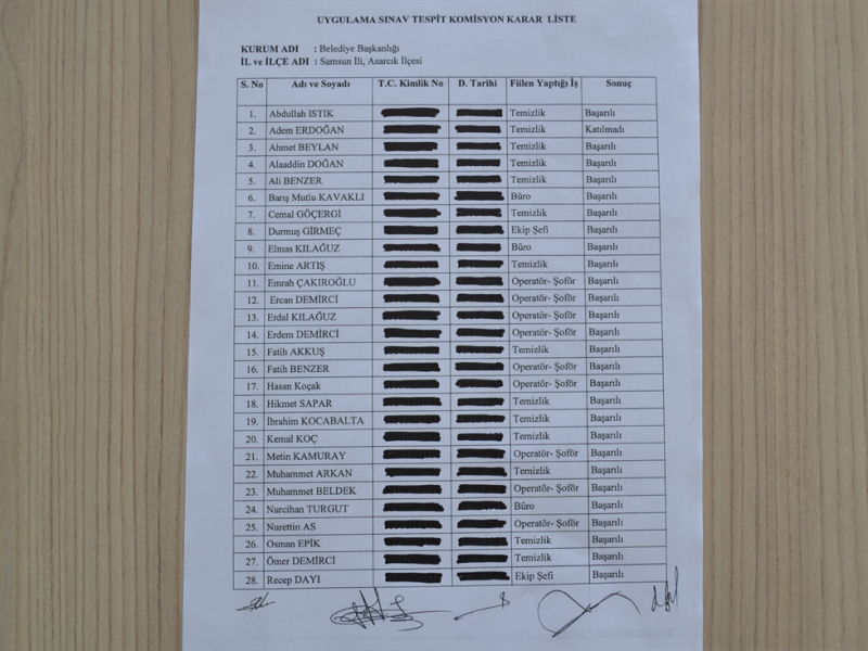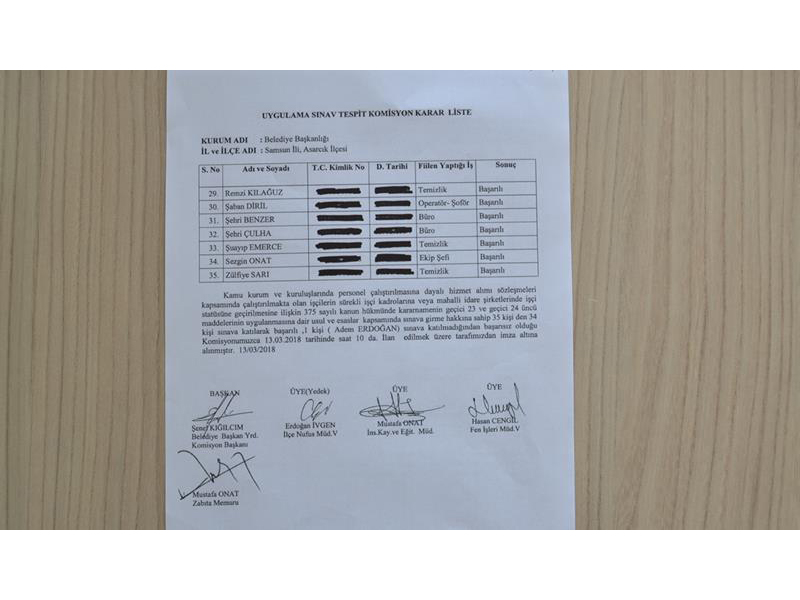 13 MART 2018 SALI GÜNÜ YAPILAN UYGULAMA SINAV SONUÇ LİSTELERİ